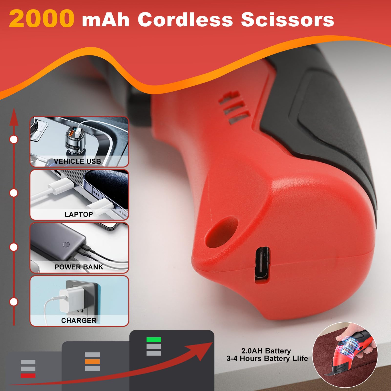 Battery: 2.0Ah rechargeable (4-hour runtime)